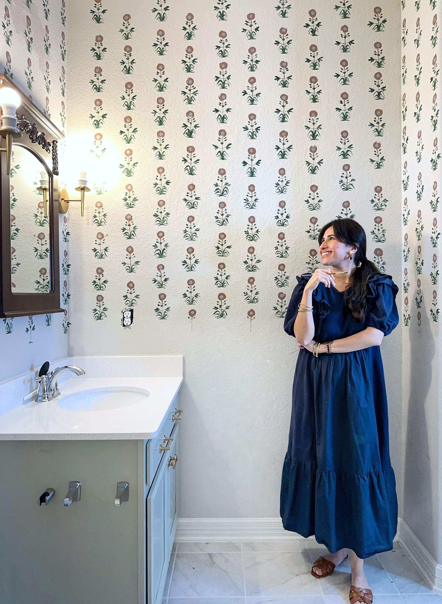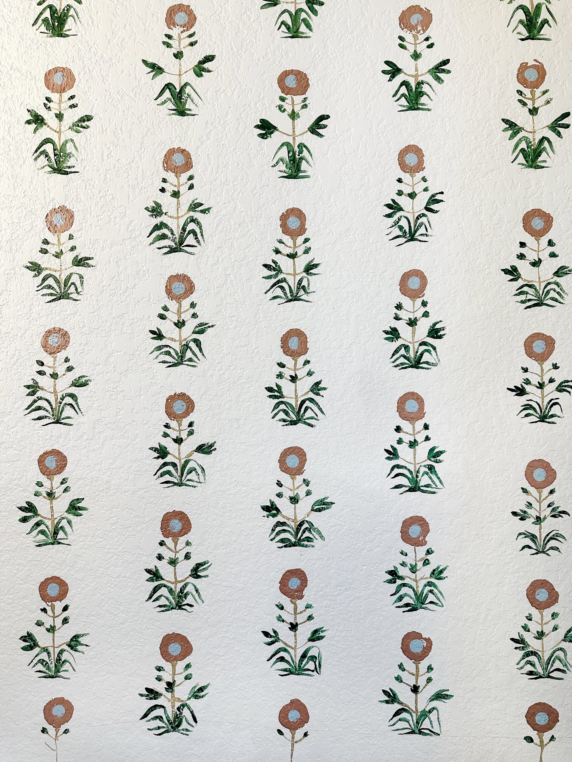So, the biggest thing that happened in August was that I finally started our guest bathroom renovation. My first action item? A painted wall pattern. That’s right, I started the painted wall pattern again! This time, though, I’m doing a hand-painted wall pattern! And although I know it might seem more labor-intensive than using a template, it’s actually been more relaxing for me. (Fun fact: Free-hand painting comes naturally to me because I majored in painting in college.)